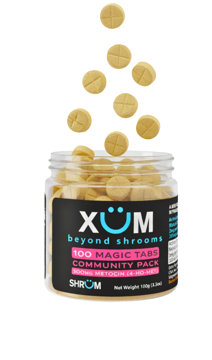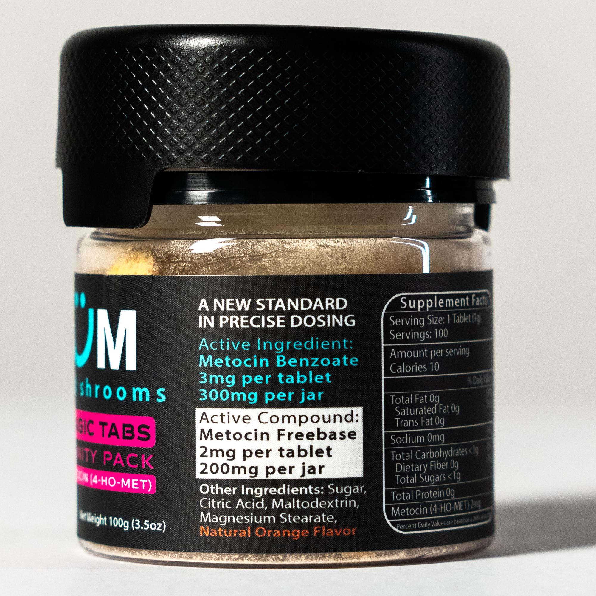 Each tablet contains 3mg of Metocin (4-HO-MET), equivalent to eating 500mg of shrooms.