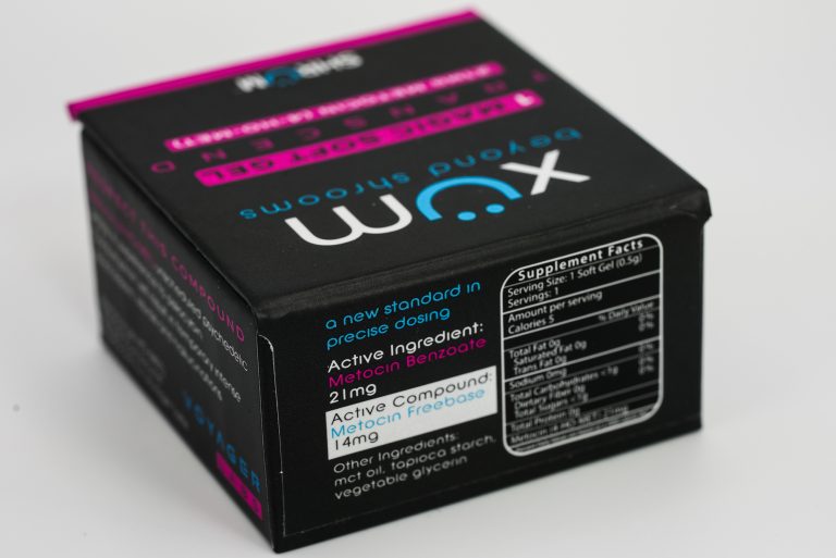 This single vegan soft gel contains 21mg of Metocin (4-HO-MET), equal to 7 XÜM tablets, approximately equivalent to eating 4 grams of shrooms.